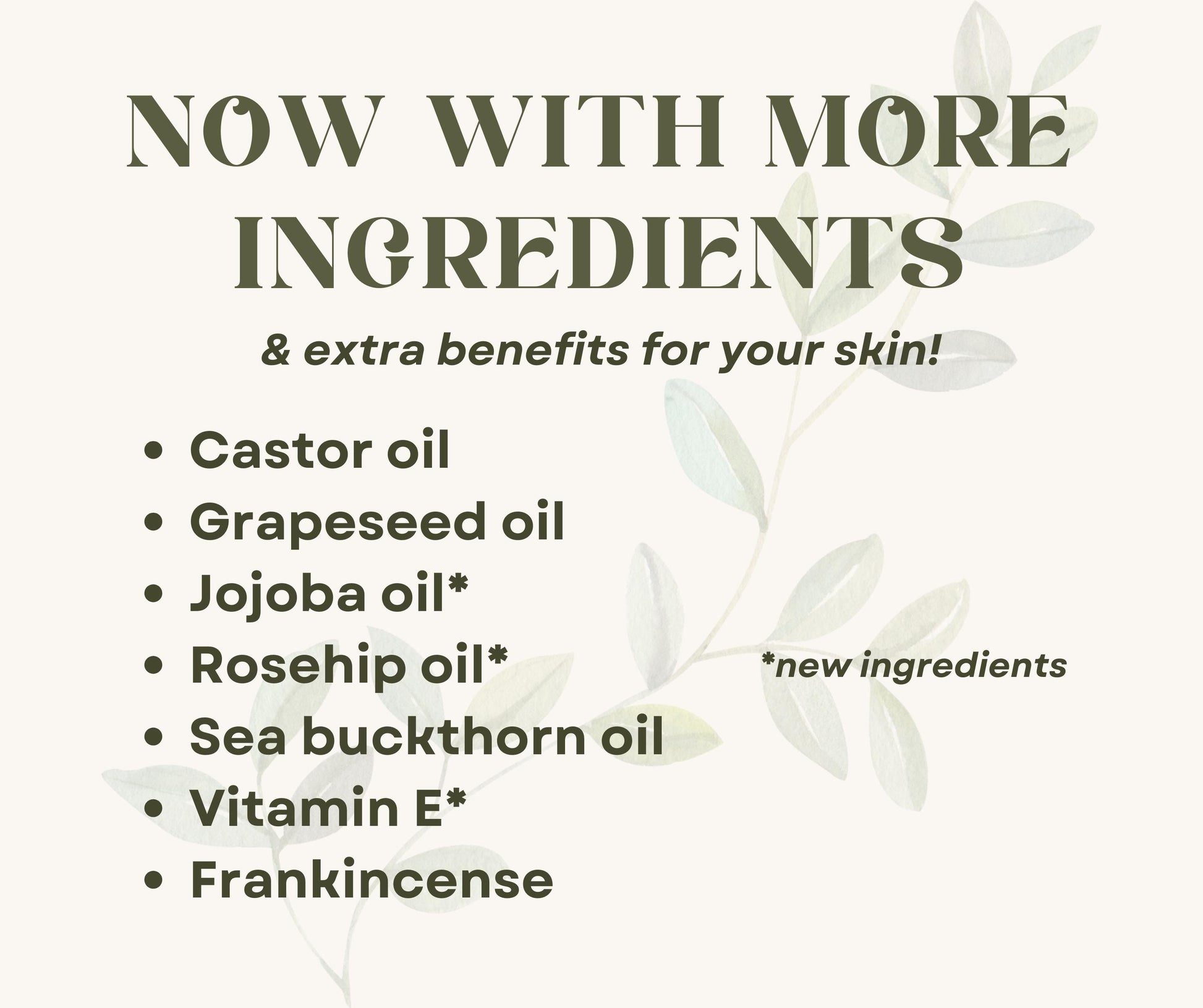 Regenerative Face Oil is carefully formulated with organic, responsibly sourced ingredients: grape seed oil, castor seed oil, jojoba oil, rosehip oil, sea buckthorn oil, vitamin E, and frankincense for tighter, brighter, and more hydrated skin.